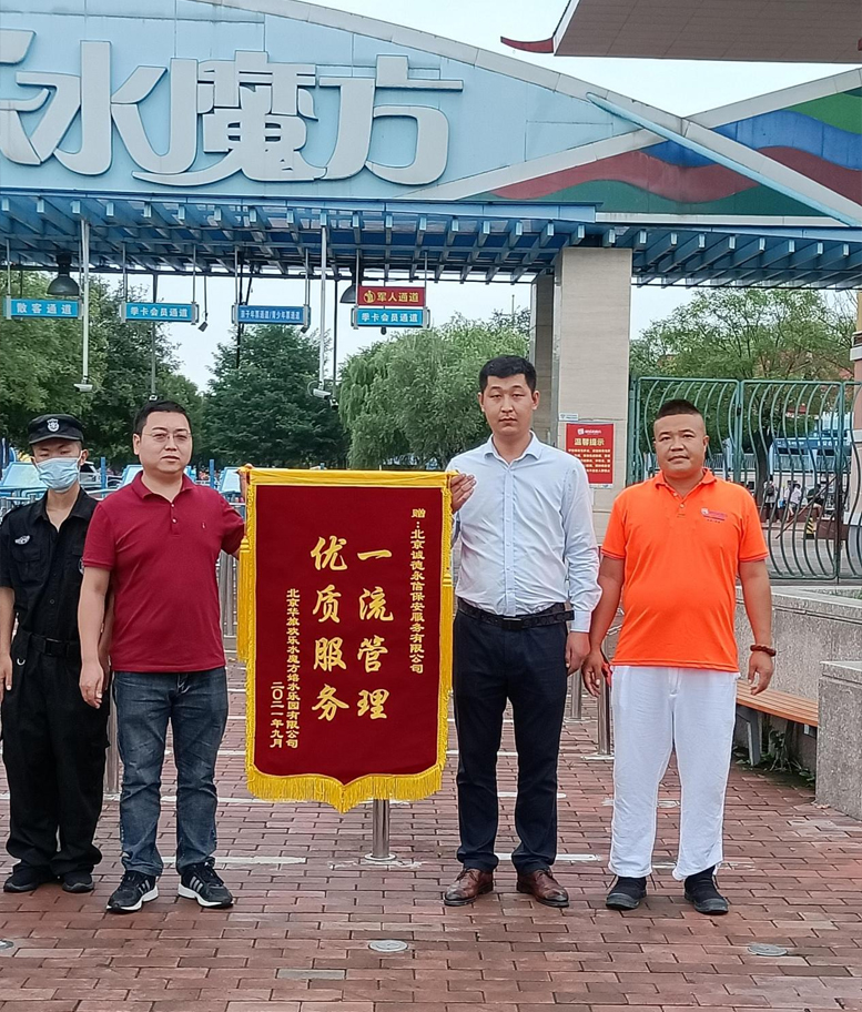 9月5日下午,我司收到北京华旅欢乐水魔方嬉水乐园有限公司送来写有“一流管理,优质服务”的致谢锦旗,这是对我司安保工作致以最崇高的敬意。一面锦旗,看似简单,但它凝聚着人民群众对安保人员的莫大鼓励,安保人员纷纷表示,赠送的锦旗既是鼓舞,更是鞭策。